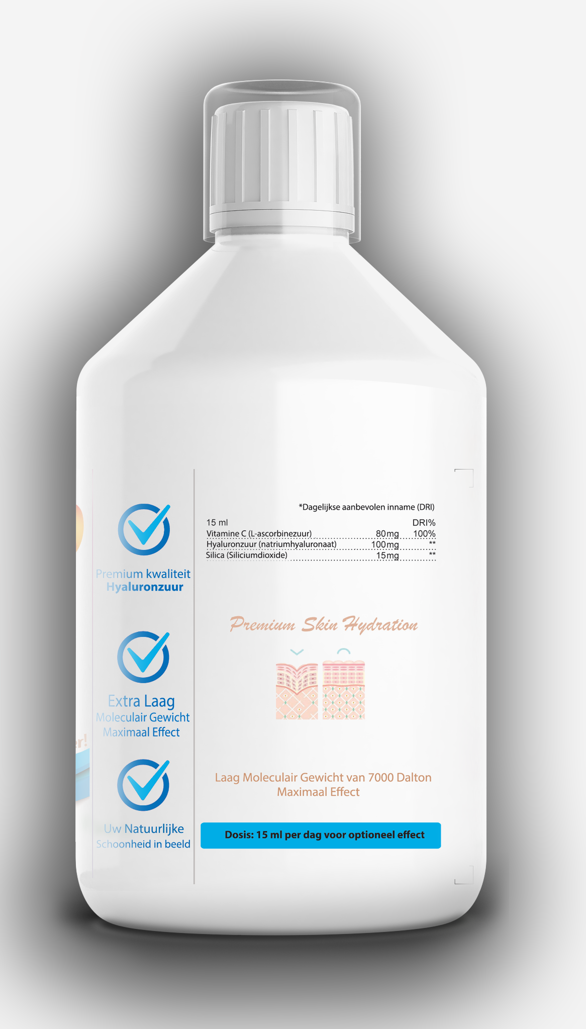 Swedish Nutra’s products are laboratory tested and backed up by evidence in nutritional science. All ingredients are hand-picked and in line with EU standards, guaranteeing a rich, evidence-based product. Our Hyaluronic Acid Liquid supplement is enriched with the antioxidant power of silica and vitamin C, protecting skin cells from oxidative stress, and is designed to:
